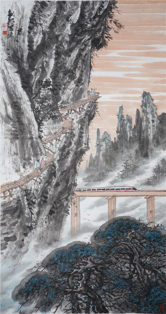 2002年作品《晴峰图》入选《纪念毛泽东在延安文艺座谈会上的讲话》发表60周年全国美展